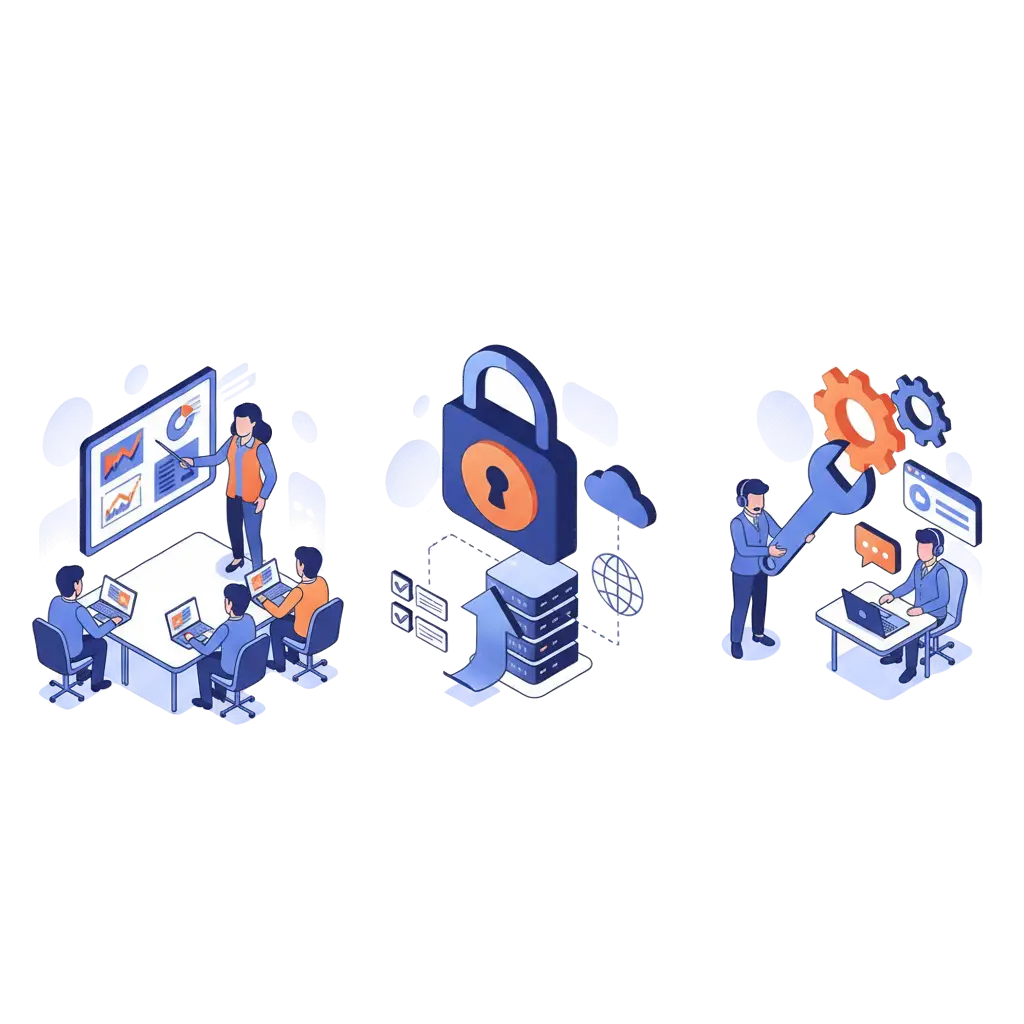 مراحل پیاده سازی سرویس 1 نصب سرویس و ماژولها بر روی سرور مشتری نرمافزار CRM و ماژولهای موردنیاز روی سرور اختصاصی شما نصب و آمادهسازی میشوند. برگزاری جلسات تحلیل، مستندسازی و نهاییسازی مستندات جلسات تحلیلی برگزار شده و نیازهای شما به صورت مستند و نهایی تدوین میشوند. 2 3 طراحی بر اساس مستندات بر اساس مستندات تأییدشده، طراحی فرآیندها و رابط کاربری آغاز میگردد. اجرا بر اساس مستندات سیستم و ماژولها طبق طراحی پیادهسازی و توسعه داده میشوند. 4 5 تست سیستم راهاندازیشده بهطور کامل تست میشود تا مشکلات احتمالی مشخص و رفع گردد. تحویل اولیه به مشتری نسخه اولیه جهت بررسی و بازخورد در اختیار شما قرار میگیرد. 6 7 اصلاحات احتمالی بازخوردهای شما بررسی شده و اصلاحات لازم روی سیستم اعمال میگردد. انتقال بر روی سرور مشتری نسخه نهایی بر روی سرور اصلی شما مستقر میشود. 8 9 آموزش، استقرار و پشتیبانی آموزش کامل به تیم شما داده شده و سیستم به همراه پشتیبانی تخصصی در اختیار سازمان قرار میگیرد.